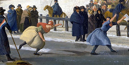 Op het schilderij zijn een paar Hollandse krulschaatsen,