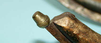 met een messing knopje bekleed. Dit knopje had vaak de vorm