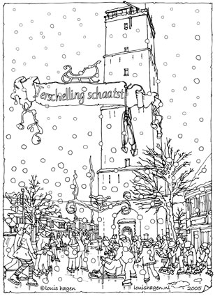 Kleurplaat 'Terschelling Schaatst' ter gelegenheid van de ijsbaan onder de Brandaris 2005